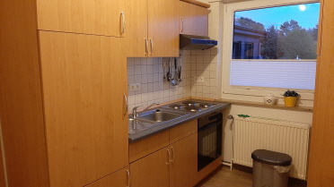 Zahlen und Fakten:  1 Schlafraum, 1 Wohnraum mit Schreibtisch und Schlafcouch, sep. Küche, Anzahl Betten: 2